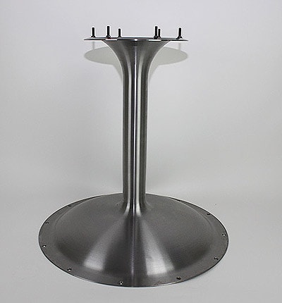 Employing a combination of metal spinning and welding, China Exotic Alloy Screws manufactures custom metal furniture components such as metal table columns and chair bases for commercial and domestic use. Constructed from steel with common material thicknesses that range from 0.040″ to 0.135″, table columns and legs can be produced in widths of 24″ outer diameter and heights to 40″. We offer finishes including #4 polish, chrome, or paint.